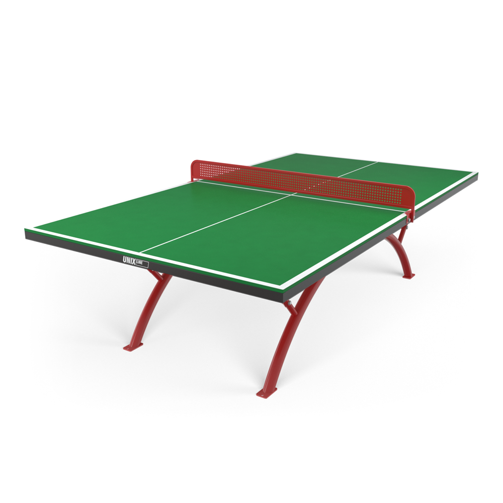 Столешница уличного стола UNIX Line изготовлена из SMС - панели с антибликовым покрытием и выдерживает многочисленные нагрузки, обладает хорошей устойчивостью к ударам, воздействию окружающей среды, влаге и температурным перепадам. Она не является горючим материалом, а также за счет высокой плотности и толщины столешницы (14 мм) обеспечивает великолепный отскок мяча и высокие игровые характеристики.