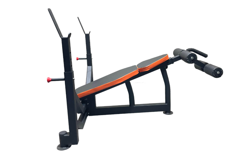 Конструкция скамьи для жима включает мягкие валики для ног с возможностью регулировки, которые надежно удерживают атлета в правильном положении.