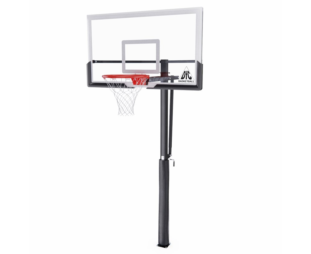 Щит изготовлен из закаленного стекла толщиной 8 мм и имеет размерность 136 х 80 см (54’’). По периметру щит имеет кант из металла. В нижней части щита и на стойке установлено защитное покрытие Poly Pade. Стойка комплектуется кольцом DFC R3 с амортизацией, которое выдерживает нагрузку до 100 кг в передней части.
