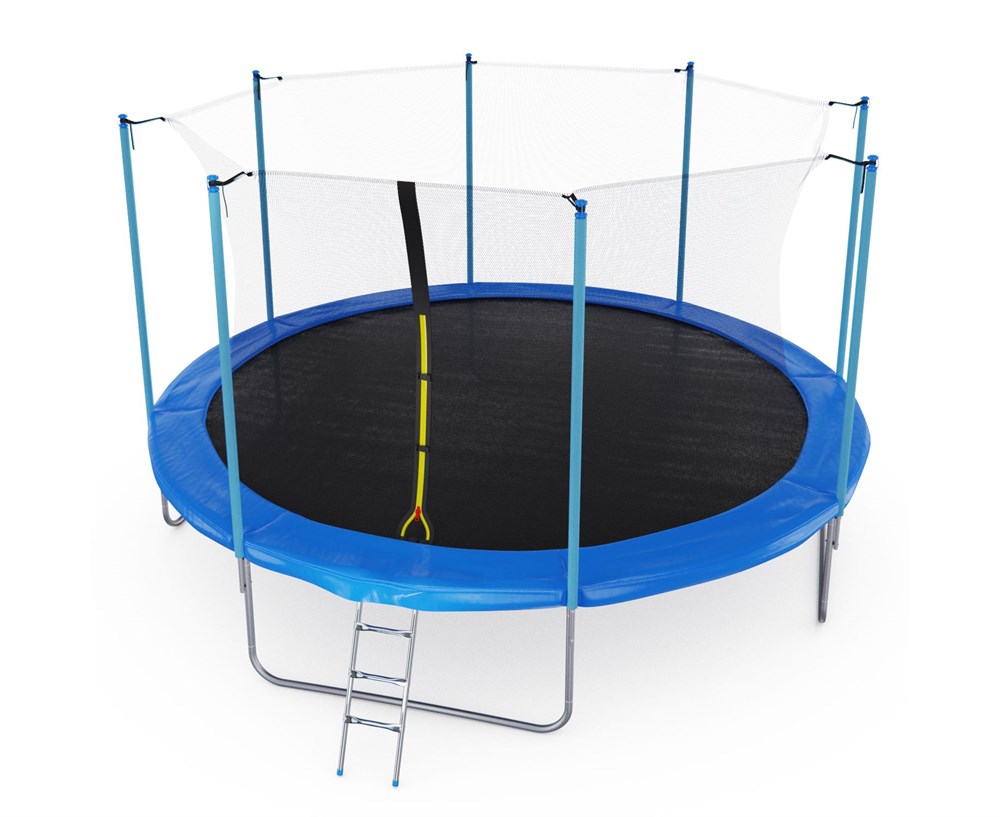 Основная рама изготовлена из восьми U-образных стальных труб диаметром 38 миллиметров и толщиной 1,3 миллиметра, что обеспечивает ее прочность и долговечность. Ножки U-образной формы, выполнены из стальных труб диаметром 38 миллиметров и толщиной 1,3 миллиметра, что придает батуту устойчивость и надежность.
