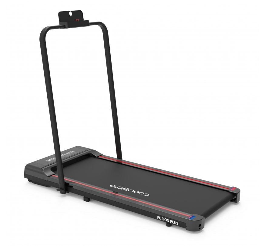 Ультратонкая беговая дорожка EVO FITNESS Fusion Plus — обновлённая версия, которая сохранила компактные размеры, но получила расширенный диапазон скорости до 10 км/ч. Для удобства и безопасности тренировок предусмотрен складной поручень с подставкой для смартфона или планшета, а также панель управления с основными кнопками: старт/стоп, регулировка скорости «+/-» и быстрый выбор режима 3 или 6 км/ч.