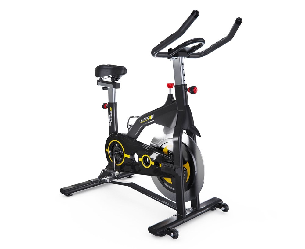 Спин-байк CHAOKE чёрного цвета удобнее и тише других. Прочная стальная рама и алюминиевый маховик весом 19 килограмм обеспечивают устойчивость во время езды на велосипеде. Он выдерживает нагрузку до 150 кг и подходит для пользователей ростом от 146 до 198 см.