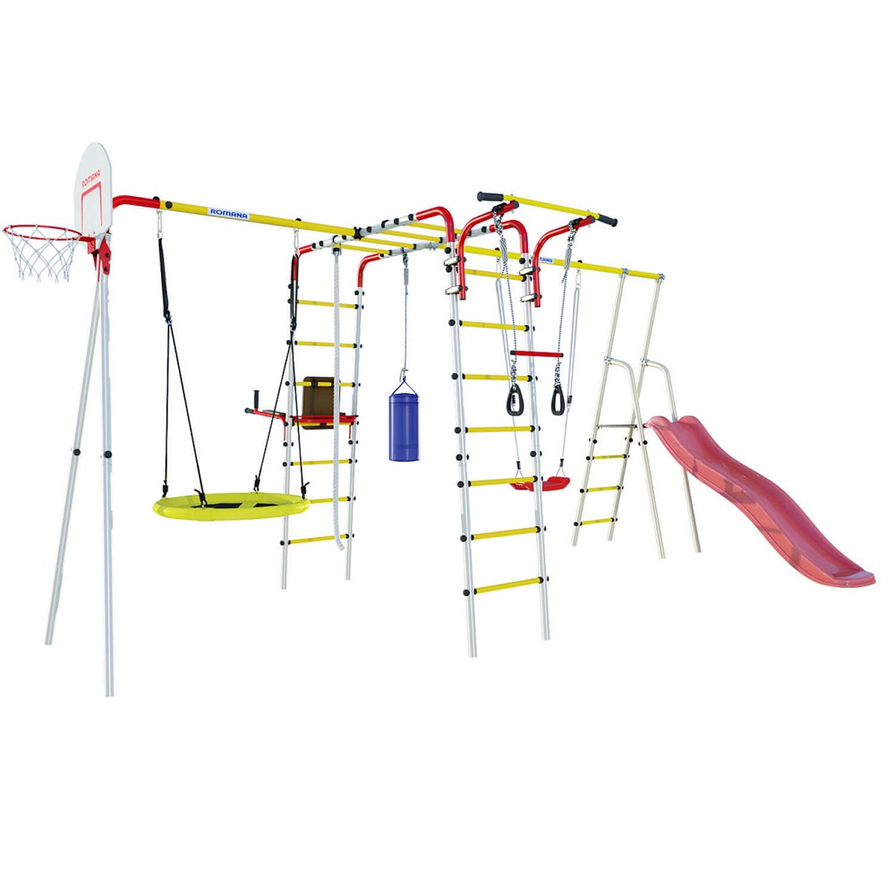 КОМПЛЕКТ ROMANA Fitness NEW + Качели гнездо + Дополнительный комплект с горкой к дачному комплексу + качели пластиковые
