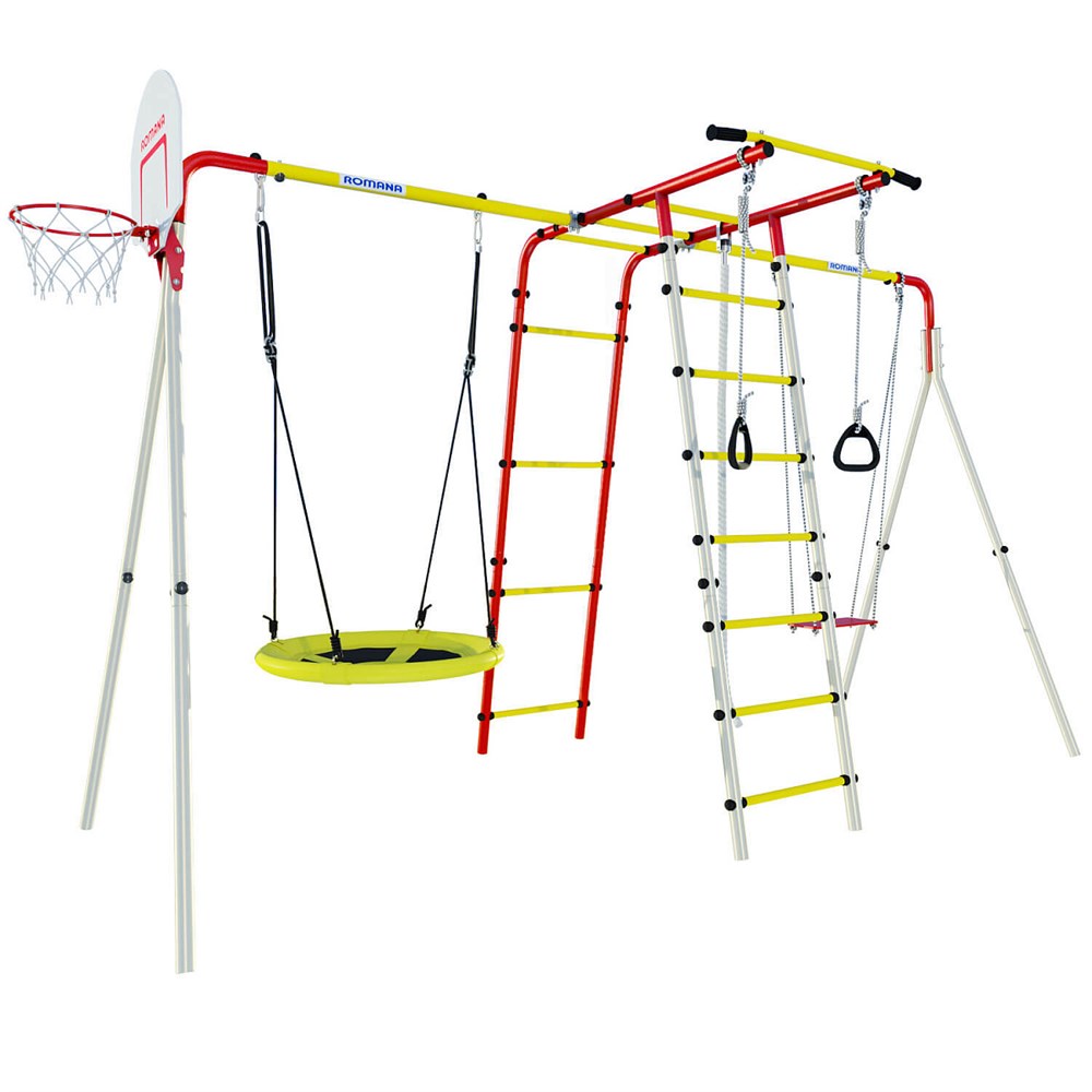 КОМПЛЕКТ ROMANA Лесная поляна - 3 NEW + Качели гнездо + Щит баскетбольный + Дополнительный комплект для качели к дачному комплексу + Качели фанерные