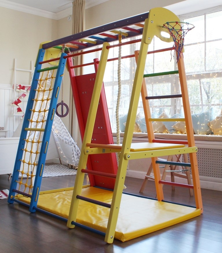 Комплектация ДСКскалодром, гладиаторская сетка, качели, канат, кольца, горка, мат