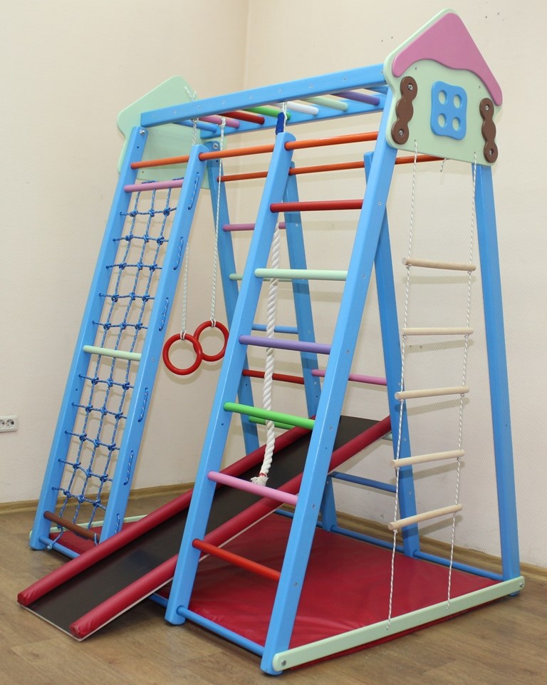 - МОРЯЧОК (Доплата по прайсу, стойки= Белые, перекладины= синие, мат=синий, горка=синяя, площадка= синяя)