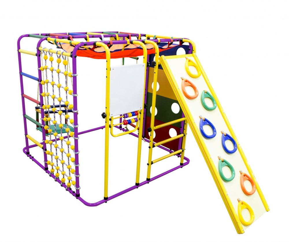 Комплектация ДСКкачели, тарзанка, сетка-гамак, кольцо для мяча, сетка для лазанья, счёты и мольберт, верёвочная лестница, панель с отверстиями, горка-скалодром с кольцами
