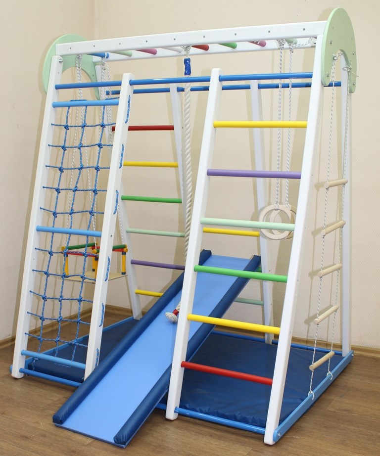 Комплектация ДСКкачели, канат, кольца, горка, мат, лесенка веревочная, шнур для вязания гладиаторской сетки