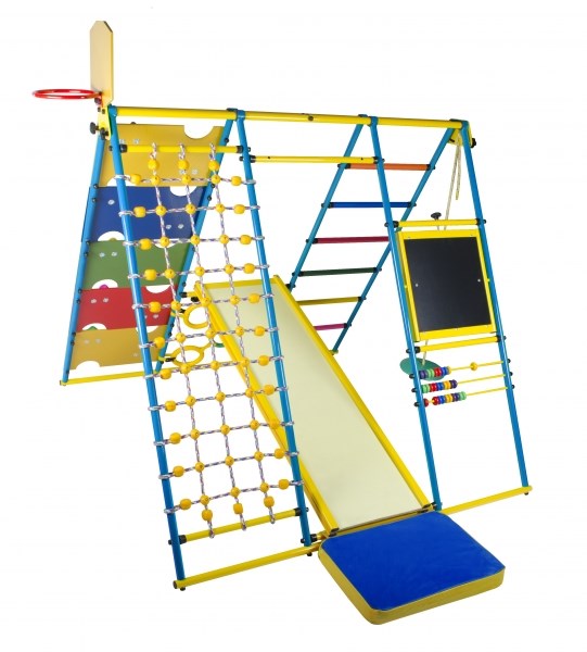 Комплектация ДСКмат, горка, тарзанка, лесенка-кольца, кольцо для мяча сетка для лазания, мольберт со счётпанель с отверстиямиами,