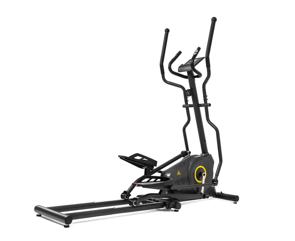 В этой модели эллиптического тренажёра есть всё для комфортных и результативных тренировок. На передней консоли можно удобно разместить планшет. Там же расположен дисплей, где отображаются основные параметры тренировки: скорость, дистанция, количество потраченных калорий, уровень пульса. Пульс считывается при помощи датчиков, расположенных на поручнях.