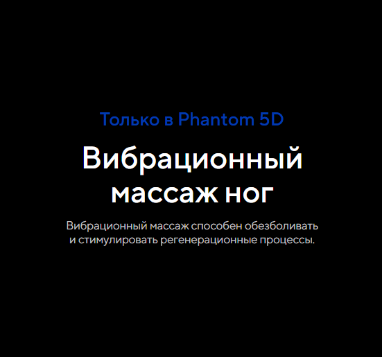 | Ручные программы | 4 техники 5D-массажа, Стоп, Разминание, 2 техники постукивания, Разминание и похлопывание, Шиацу (2 режима), Схватывание |
