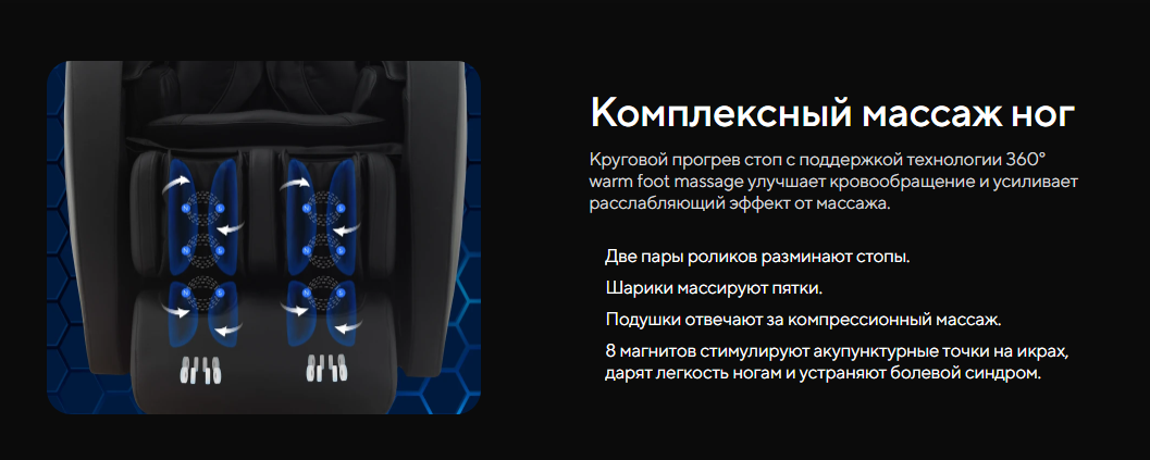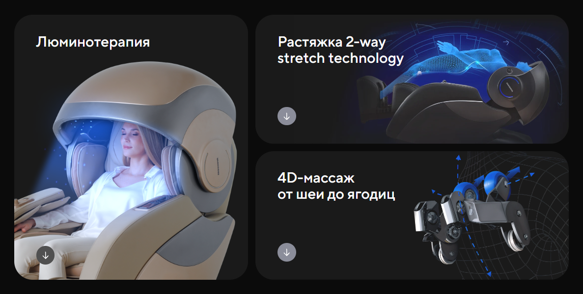 Уникальные особенности | Выдвижной купол, Скручивание с твист растяжкой, Массаж стоп на 360 градусов |