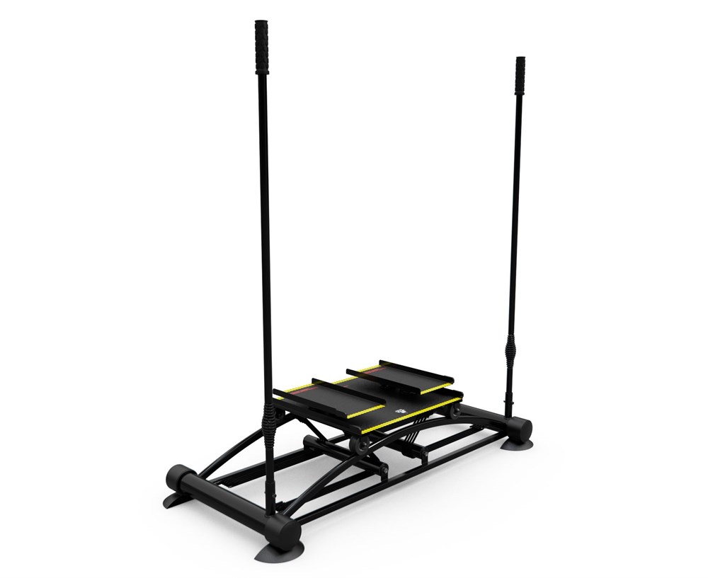 Педали на горнолыжном тренажере обеспечивают удобное и безопасное положение стопы. Они имеют шершавое нескользящее покрытие и бортики по краям, которые предотвращают соскальзывание ног во время тренировки. На тренажере также есть поручни, которые обеспечивают дополнительную поддержку и устойчивость во время занятий.