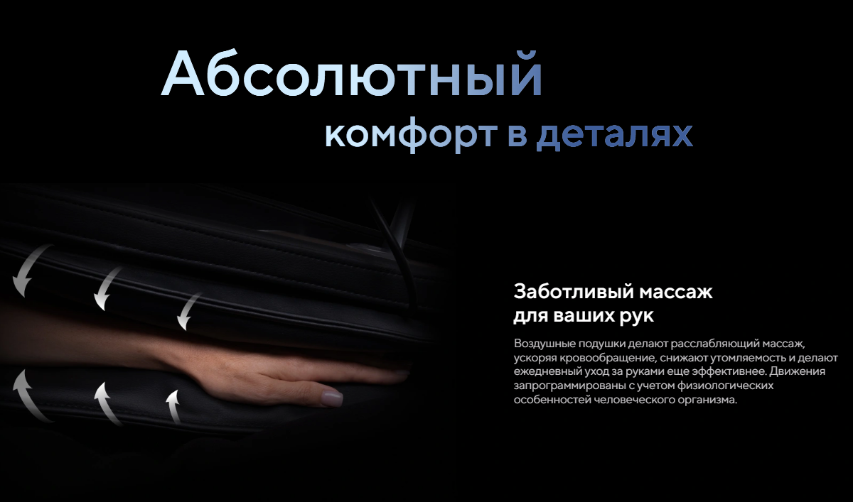 | Ручные программы | Разминание (7 режимов), Постукивание (2 режима), Разминание и постукивание, Шиацу (2 режима), 4D массаж (4 режима), Массаж плеч |