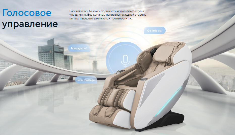 Функционал | Голосовое управление, Растяжка спины, Функция невесомости (Zero G), Прослушивание музыки через Bluetooth, Панель быстрого доступа, USB-зарядка для телефона |