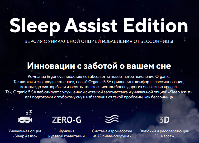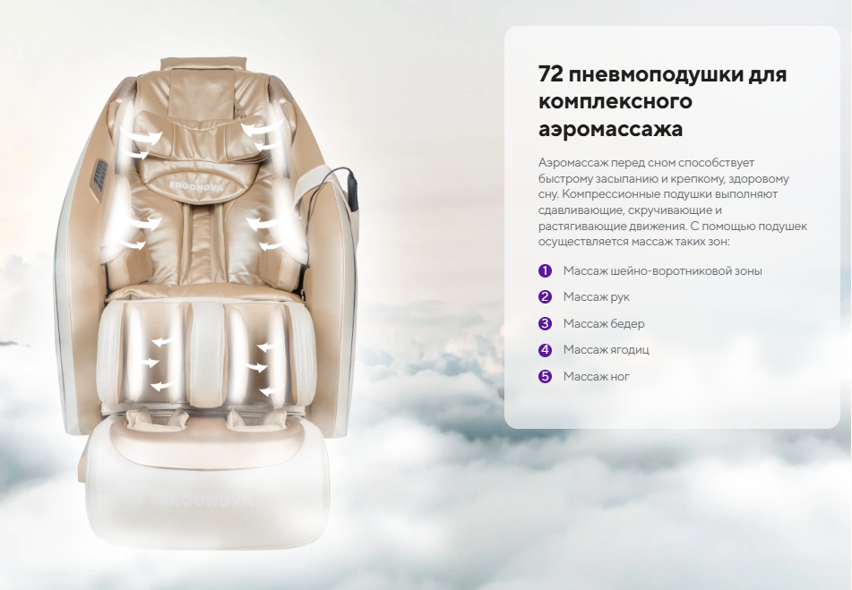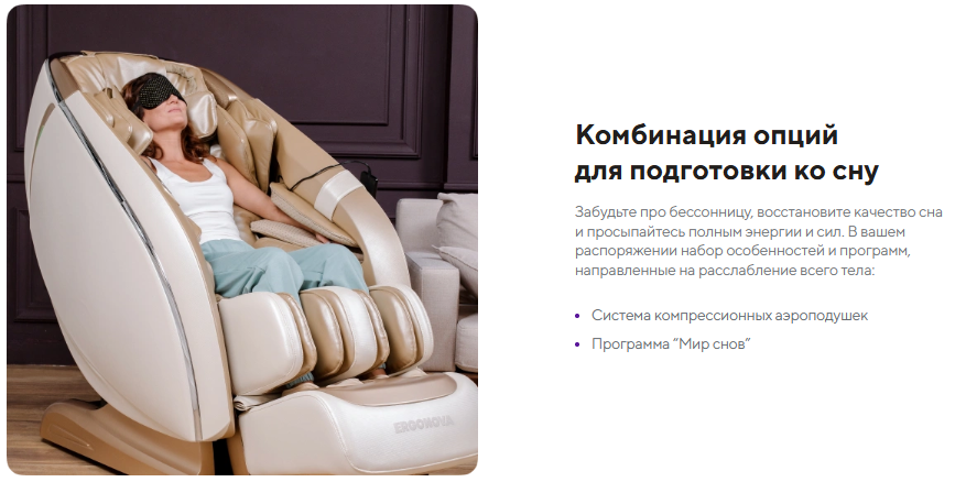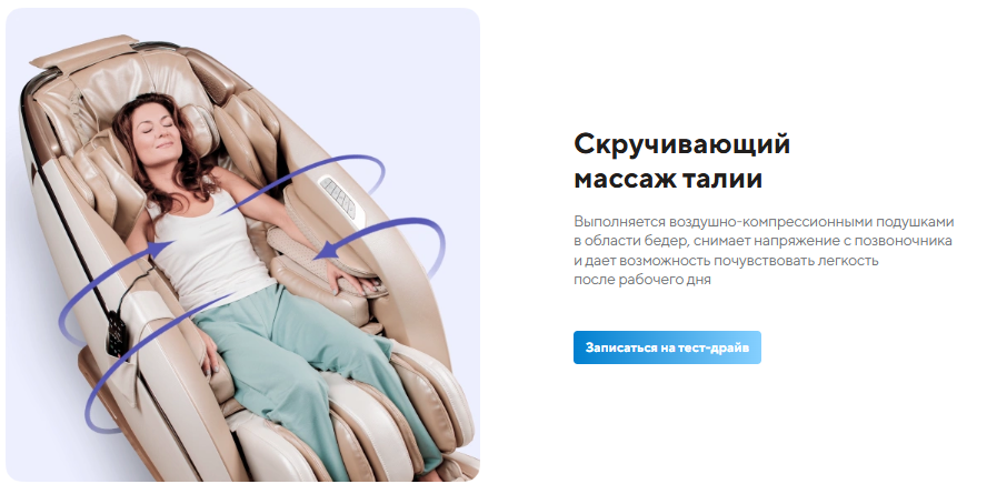 Функционал | Голосовое управление, Растяжка спины, Функция невесомости (Zero G), Прослушивание музыки через Bluetooth, Панель быстрого доступа |