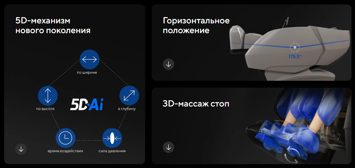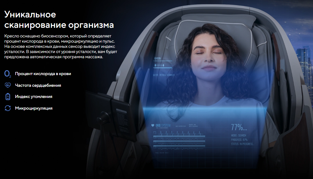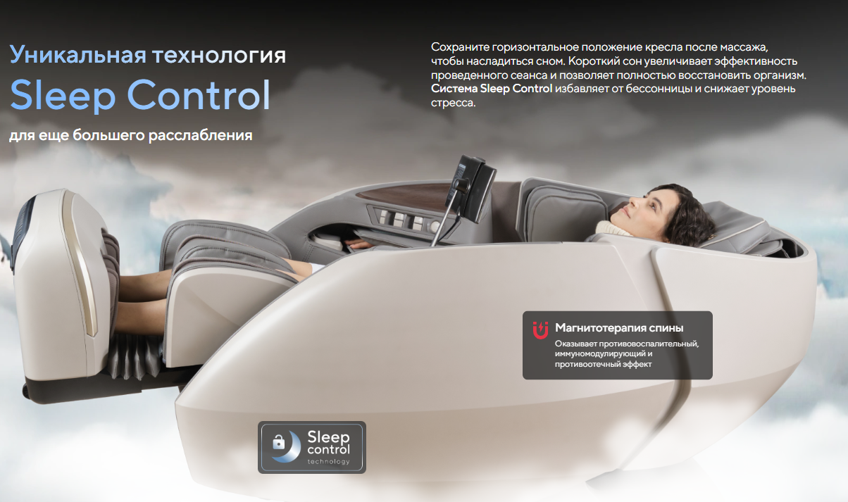 Инновационная модель, разработанная с учетом последних медицинских исследований. Кресло с 5D-системой, массажем стоп на 360° и технологией Sleep Control