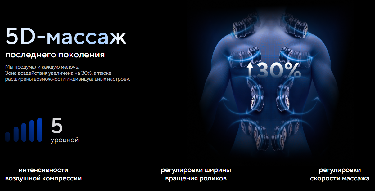 Регулировка интенсивности роликового массажа | 5 уровней |