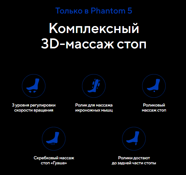 Ручные программы | 4 техники 5D-массажа, Стоп, Разминание, 2 техники постукивания, Разминание и похлопывание, Шиацу (2 режима), Схватывание |