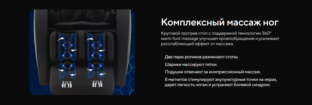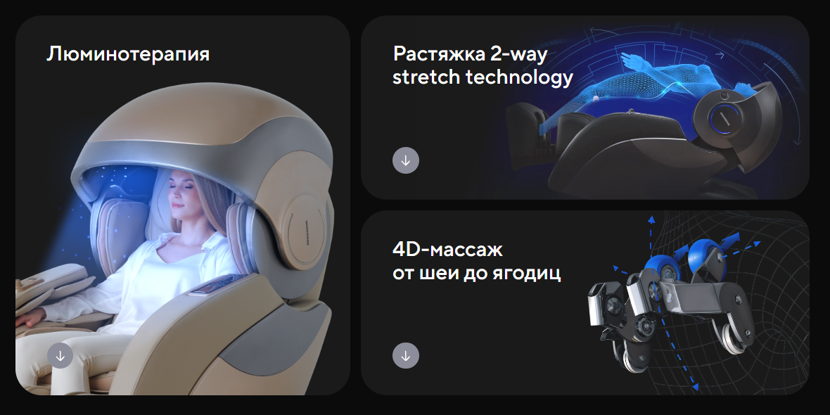 Уникальные особенности | Выдвижной купол, Скручивание с твист растяжкой, Массаж стоп на 360 градусов |