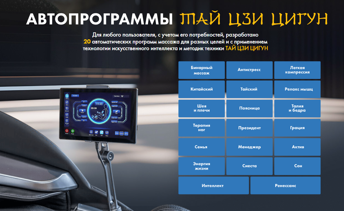 - 20 авто программ применяют различные методики японской и китайской гимнастики оздоровления