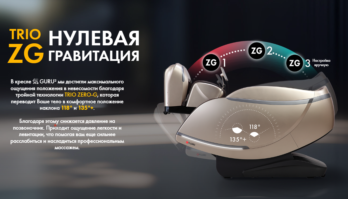 - Ощущения невесомости создано благодаря тройной технологии TRIO ZERO-G с наклоном 118 и 135+ градусов.