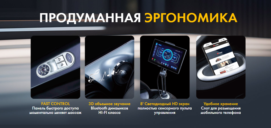 - Панель быстрого доступа FAST CONTROL моментально меняет массаж и управляет наклоном