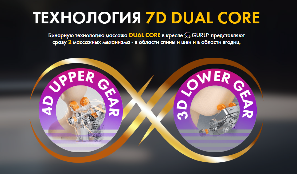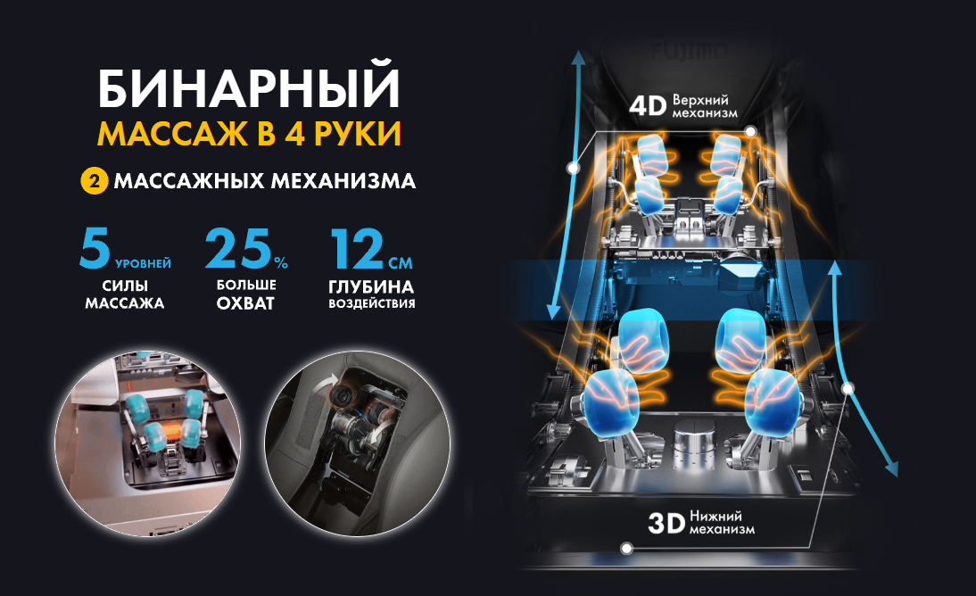 - Бесконечное прикосновение 7D DUAL CORE бинарного массажа в 4 руки - при помощи 2-х механизмов - 4D в области плеч и спины и 3D в области ягодиц