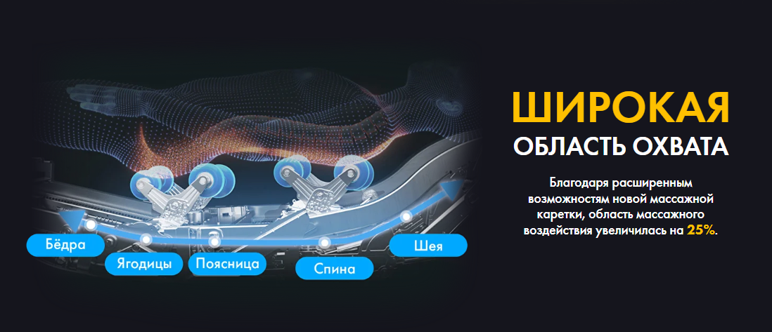 | Зоны массажа | Шея / Спина / Поясница / Плечи / Руки / Бедра / Ягодицы / Икры / Стопы |