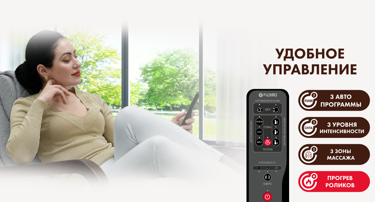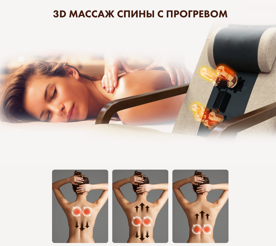 - 3 автоматических программы многоуровневого массажа спины