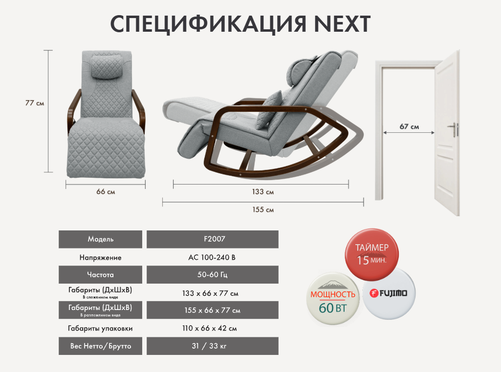 | Название для Aliexpress | Массажное кресло качалка FUJIMO SOHO NEXT Бежевый |