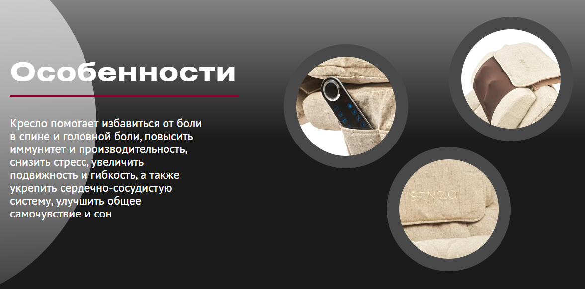 - в конструкции используется надежный японский массажный механизм компании SENZO
