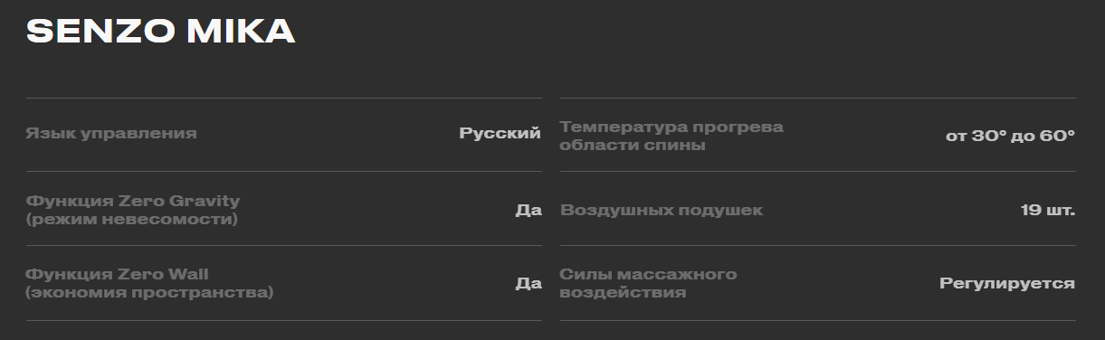 - Кресло обладает режимом "нулевой гравитации" Zero-G. Это положение максимизирует эффективность массажа, обеспечивая ещё более глубокое ощущение комфорта и расслабления