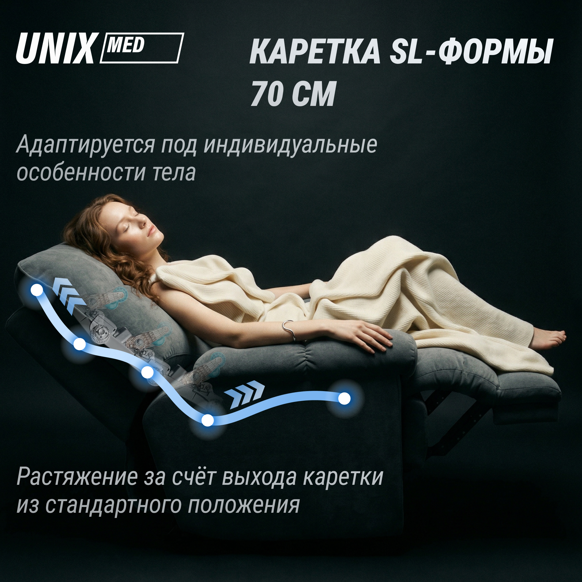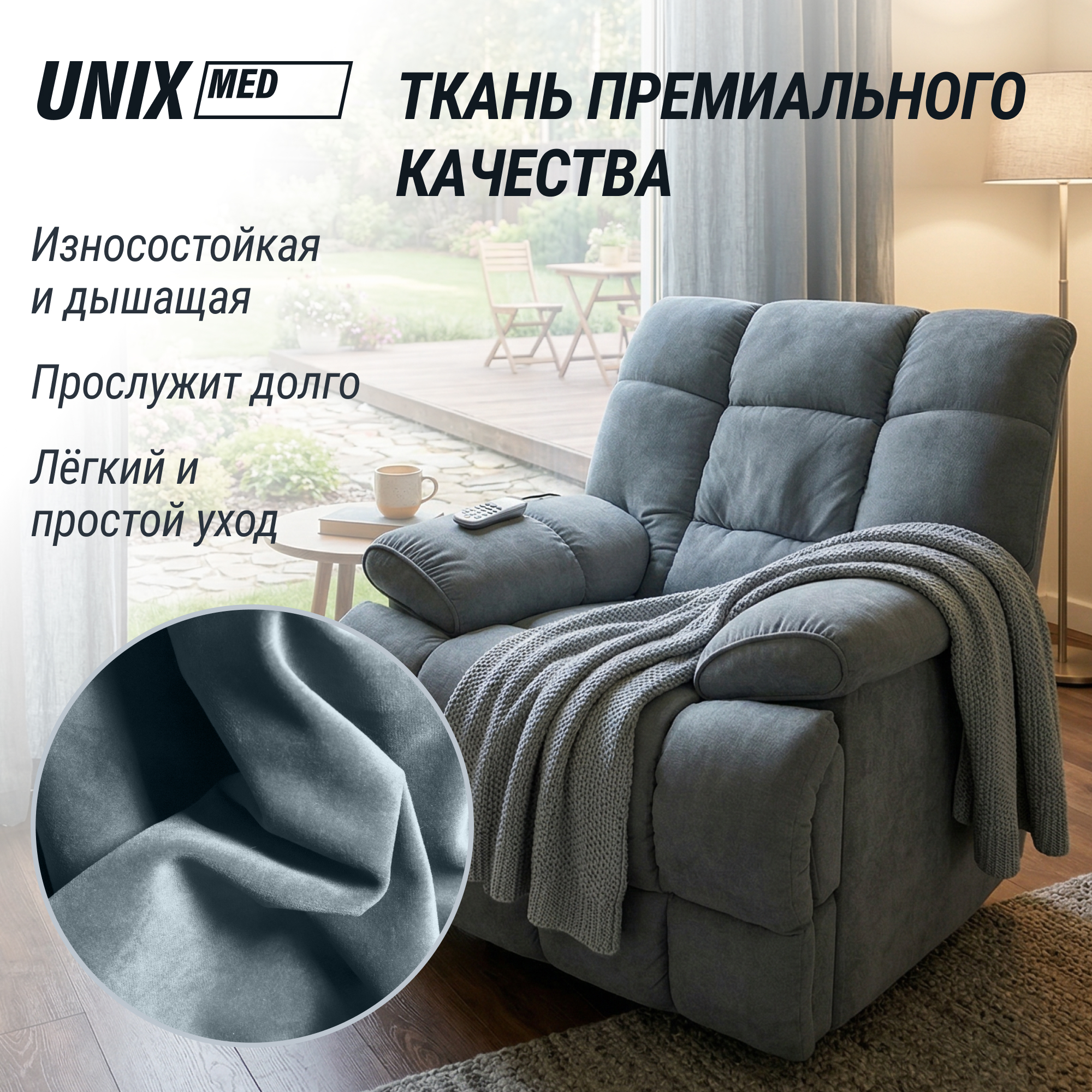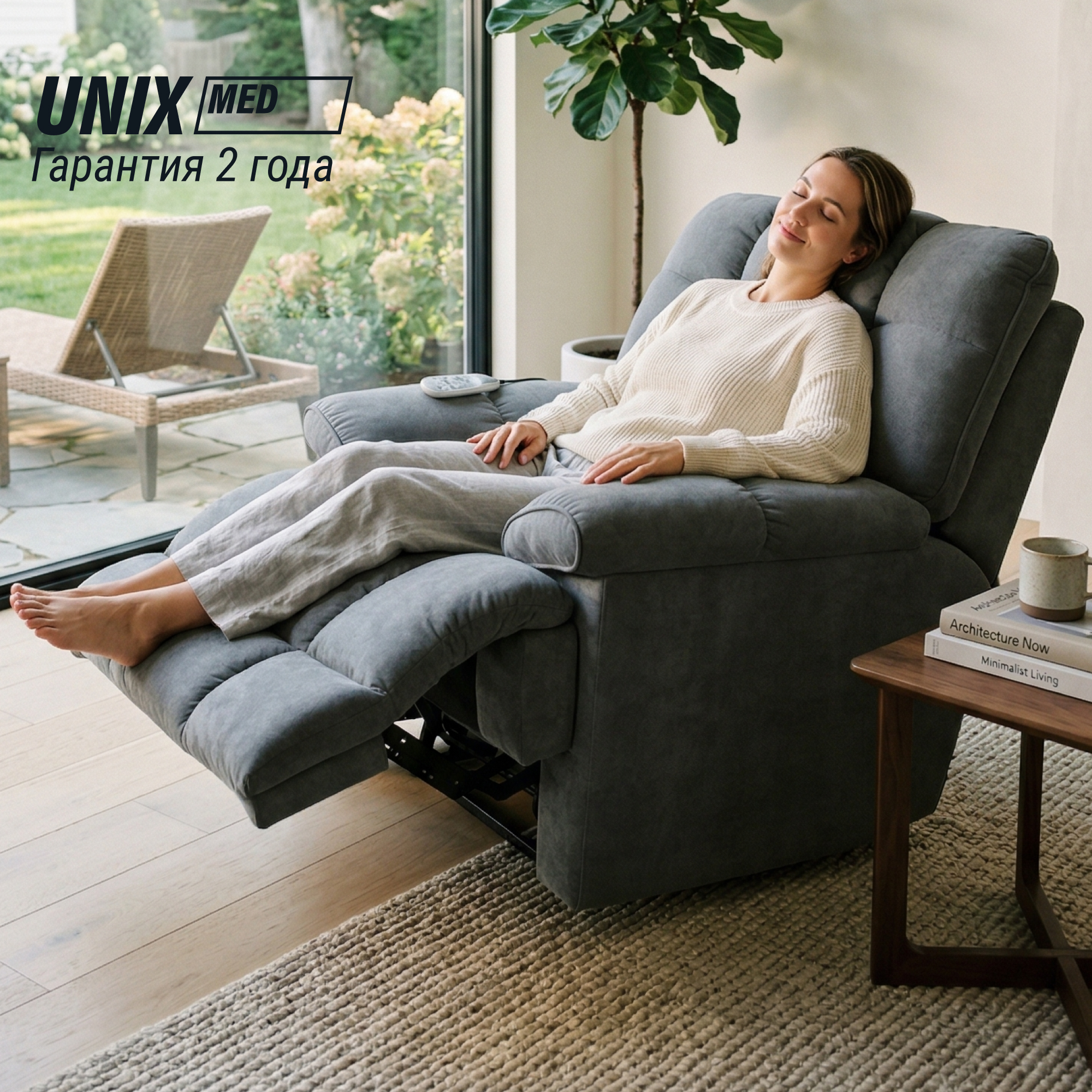 Обладая уникальными характеристиками и гармонично сочетая последние технологии массажа с безупречным видом интерьерного кресла, реклайнер UNIX Med подойдет для тех, кто ценит свое здоровье и комфорт. Это не просто удобное кресло — это ваш личный домашний спа-салон премиум-класса, созданный специально для максимального расслабления мышц, снятия стресса и восстановления жизненных сил.