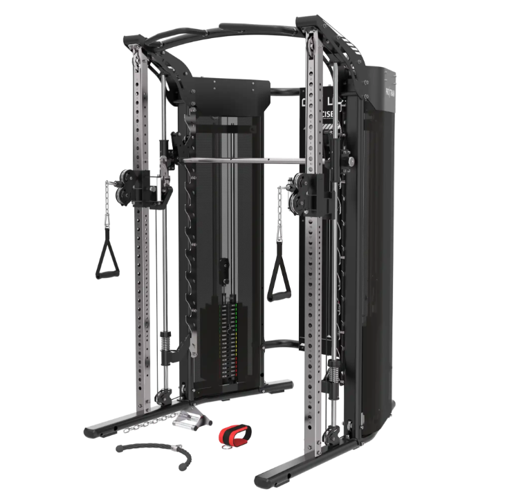 Сочетает в себе: машину Смита, кроссовер, стойки для приседаний и жимов, силовую раму, функциональный тренажер, турник и брусья. Есть возможность приобретиения дополнительных опций (жим ногами, силовые рычаги и др.).