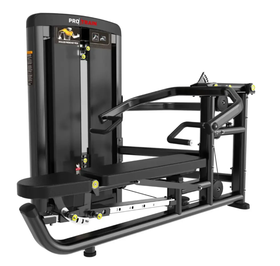 Грузоблочный тренажер для тренировки грудных, дельтовидных мышц и трицепса.