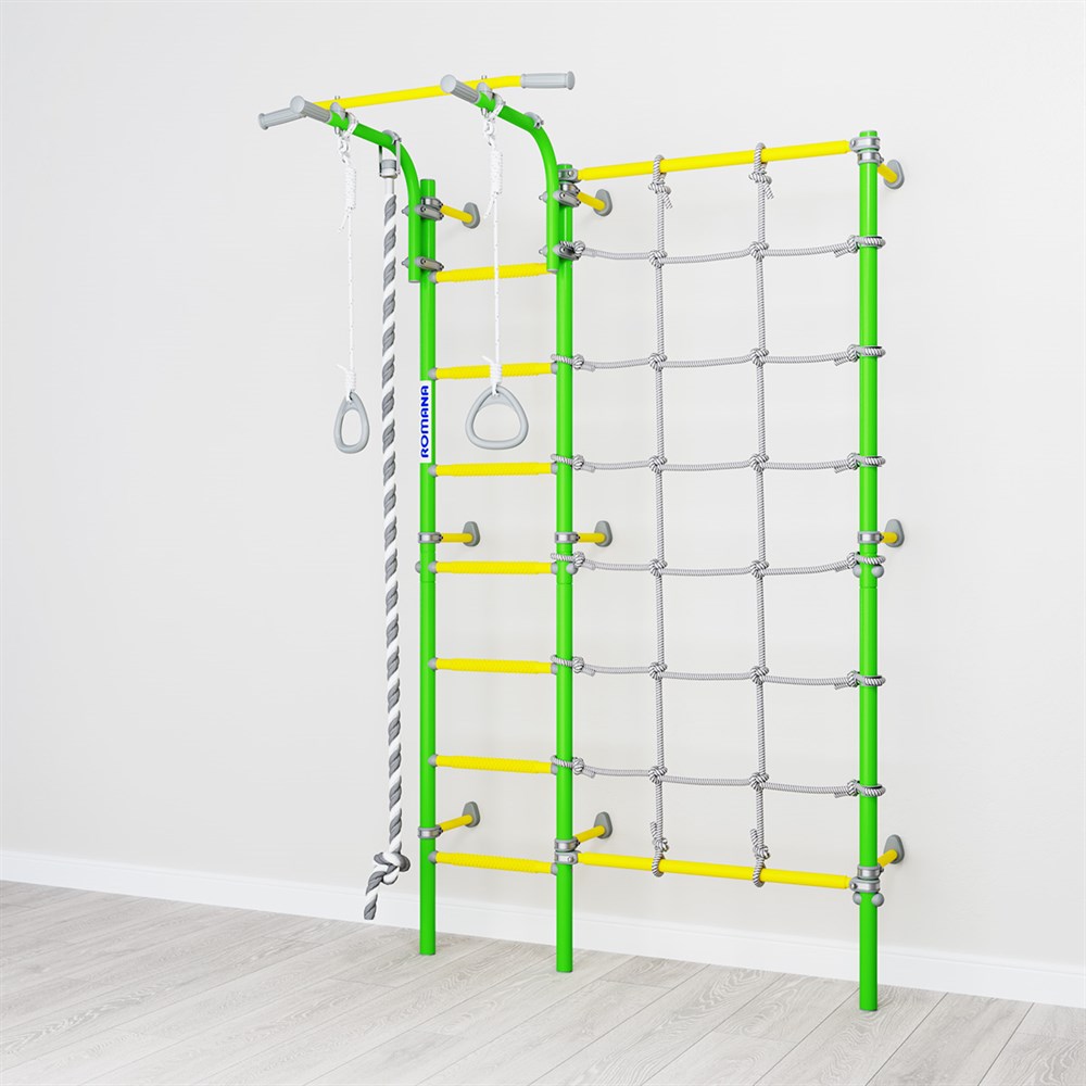 Детский спортивный комплекс ROMANA S3 состоит из шведской стенки и веревочного лаза, которые фиксируются у стены на оригинальные подвижные крепежи. Благодаря этому комплекс можно закрепить у любой свободной стены, не боясь попасть в полость или проводку.