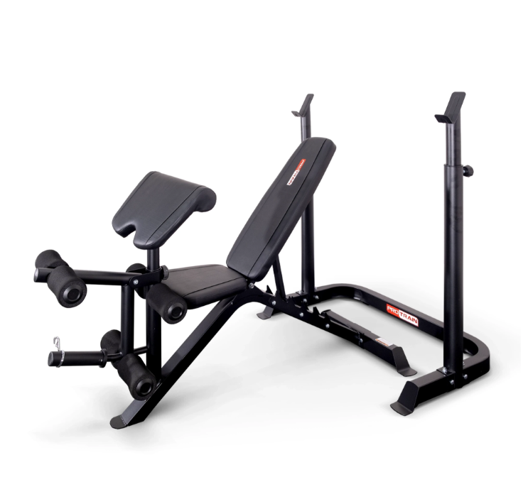 Скамья для жима с подставкой для штанги Protrain WB859P для выполнения жимов и упражнений на разные группы мышц.