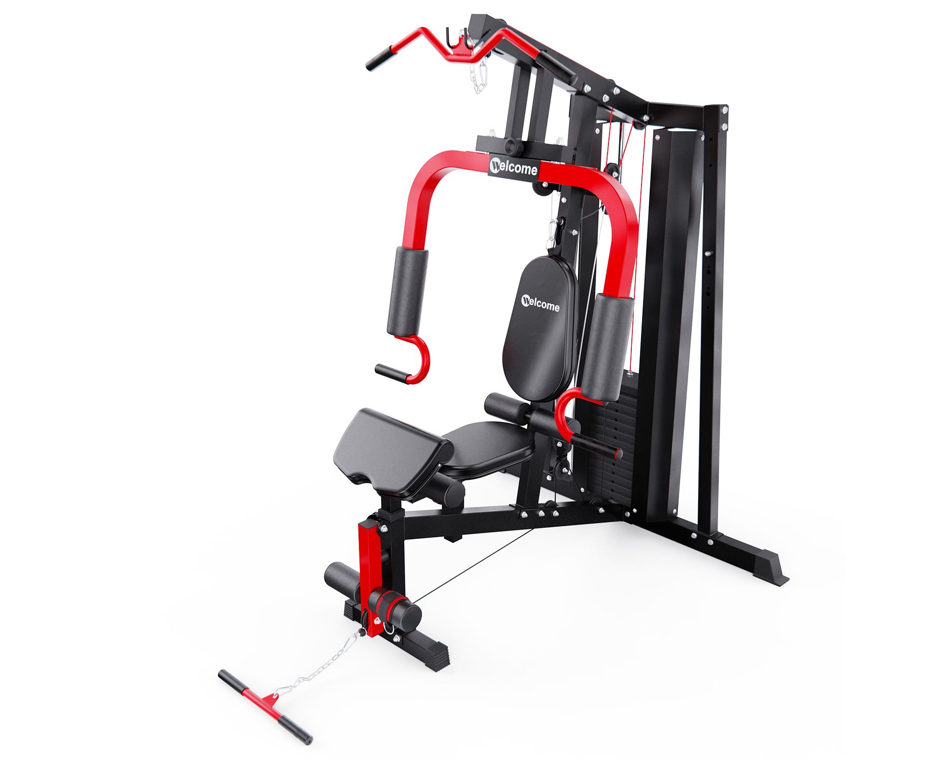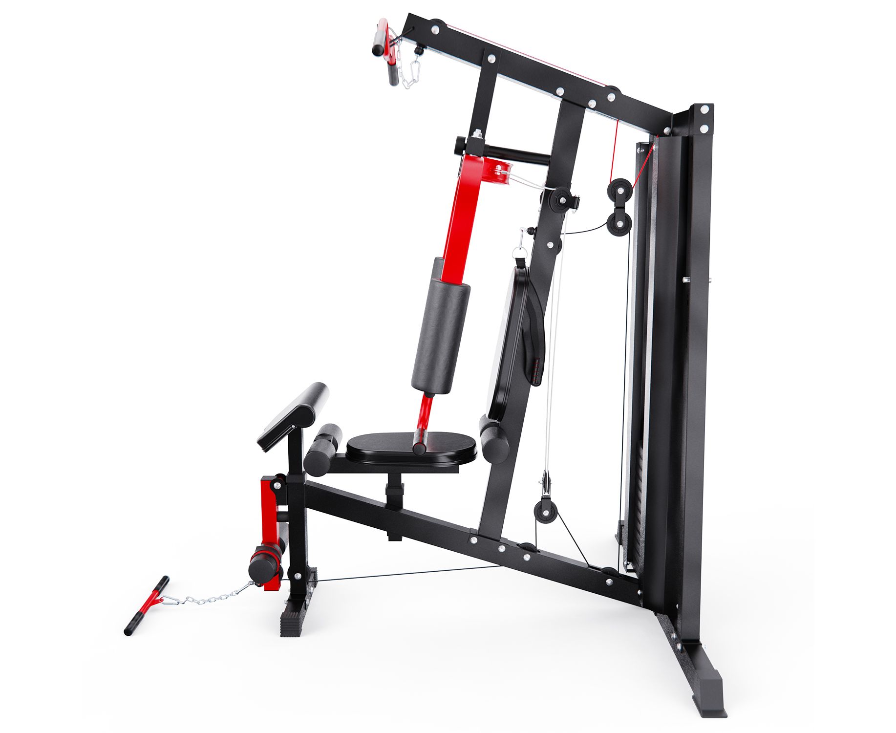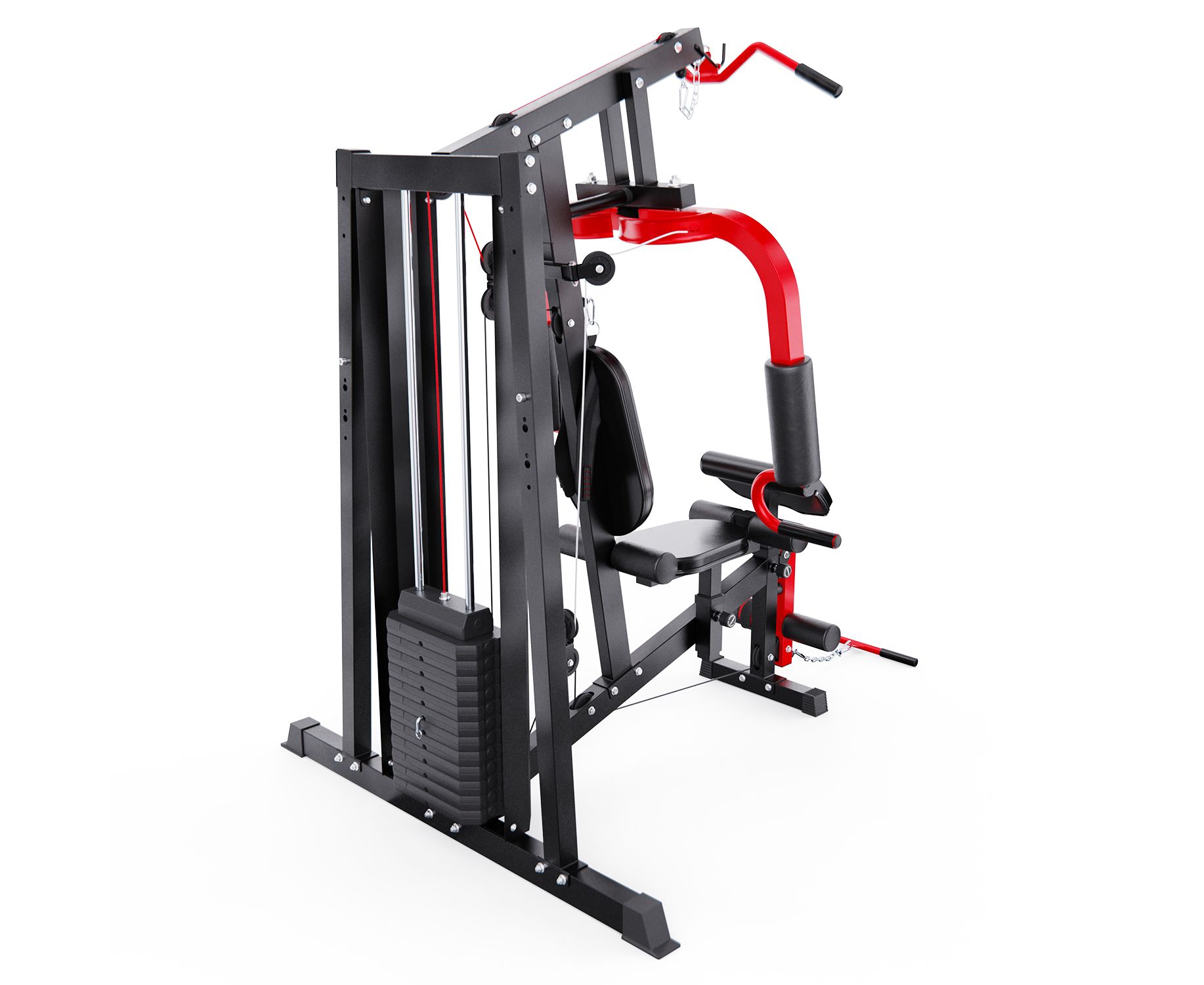 Габариты в рабочем состоянии — 147 х 133 х 208 см, что позволяет разместить тренажёр даже в условиях ограниченного пространства, например, в квартире. Эргономичная конструкция обеспечивает комфорт и безопасность во время занятий. В комплекте — 11 весовых блоков по 5,8 кг и 1 верхний на 3 кг, общим весом 66,8 кг. Это позволяет гибко подстраивать тренировочную нагрузку под ваш уровень подготовки.