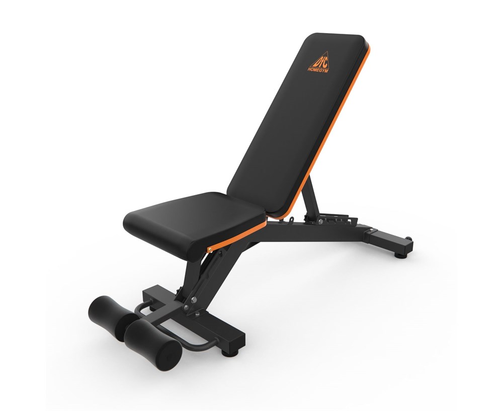 Сиденье и спинка скамьи регулируются по углу наклона в широком диапазоне. Фиксация в нужном положении с помощью упора с обратной стороны скамьи.