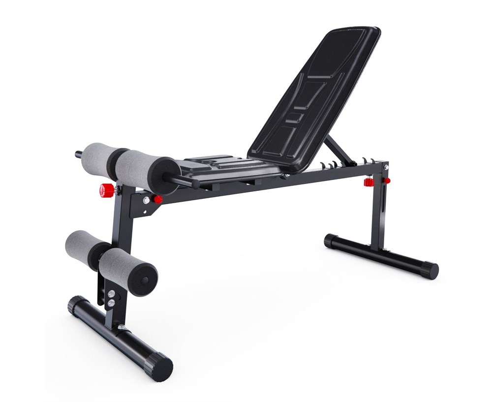 Валики из вспененного материала регулируются на 8 уровней по высоте и обеспечивают надёжную фиксацию во время тренировки. Большие ножки скамьи для фитнеса прорезинены по всей площади, чтобы защитить пол, а противоскользящая конструкция всегда обеспечивает устойчивое положение. Скамья также имеет складную и компактную конструкцию, чтобы сэкономить место в доме.