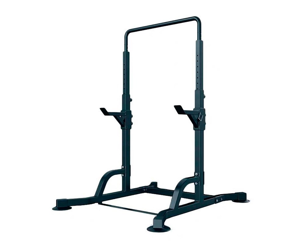 Позволяет выполнять широкий спектр упражнений: приседания со штангой, жим и другие. Так же используется как турник.