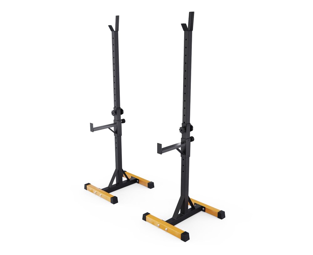 Две отдельные стойки для жима позволяют установить их на любом удобном расстоянии друг от друга. Нескользящие ножки надежно устанавливаются на полу и не царапают поверхность.