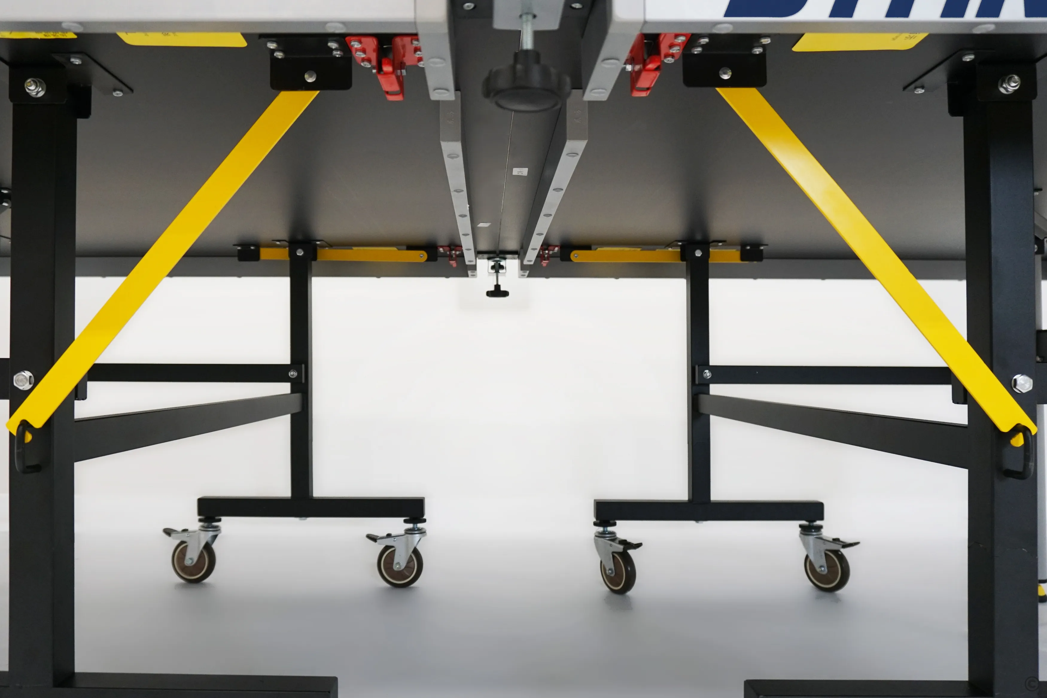 Восемь обрезиненных транспортировочных колес обеспечивают легкость перемещения стола. Колеса оснащены стопорами, которые задают жесткую фиксацию нужного положения и фиксируют стол во время игры.