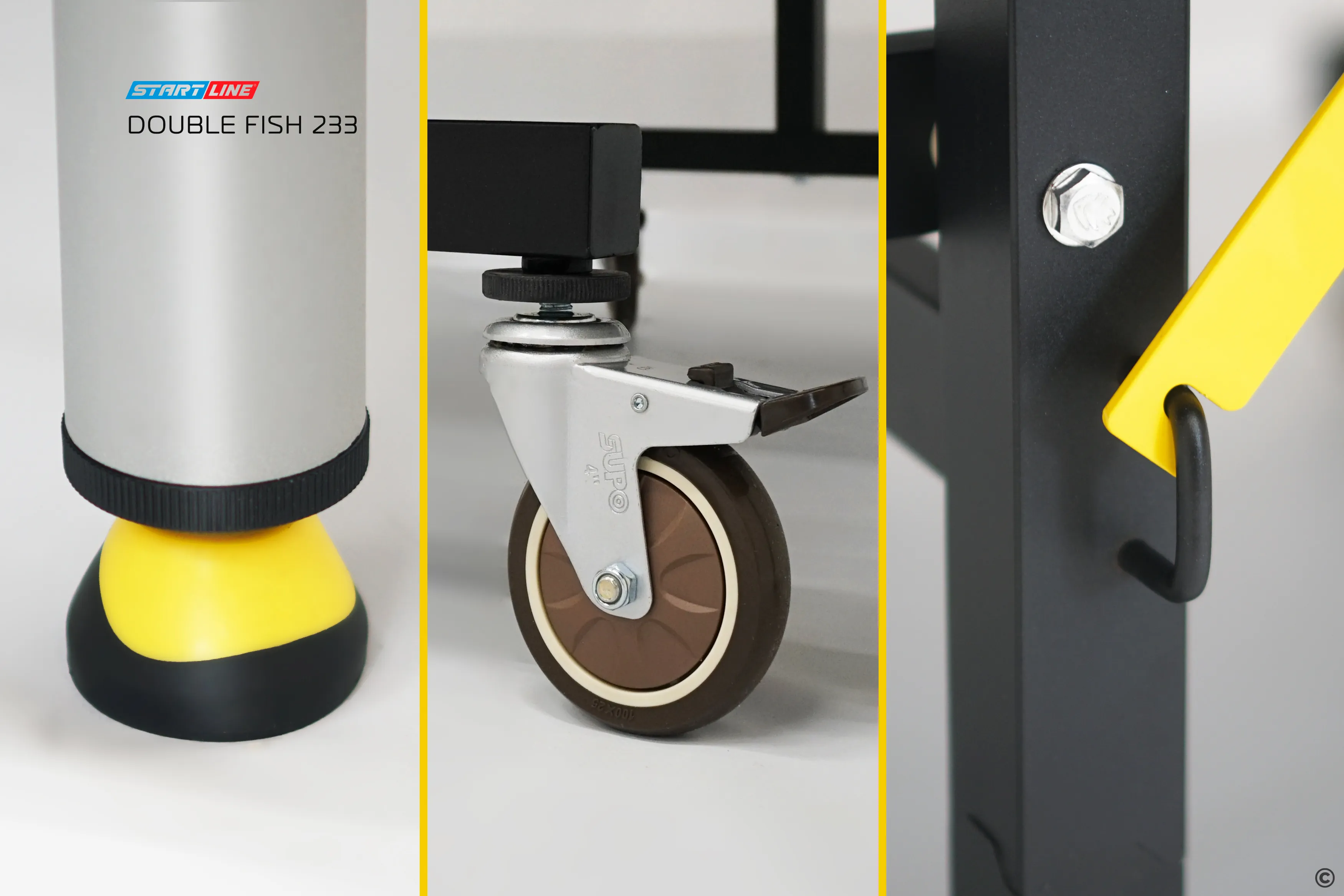 Double Fish 233 – теннисный стол с мировым именем от ведущего производителя оборудования для настольного тенниса. Крепкое сотрудничество Start Line и Double Fish позволило сегодня представить эту уникальную модель на российском рынке и среди стран СНГ. Высочайшие игровые характеристики ставят стол Double Fish 233 на одно из самых почетных мест среди «мировых профессионалов».