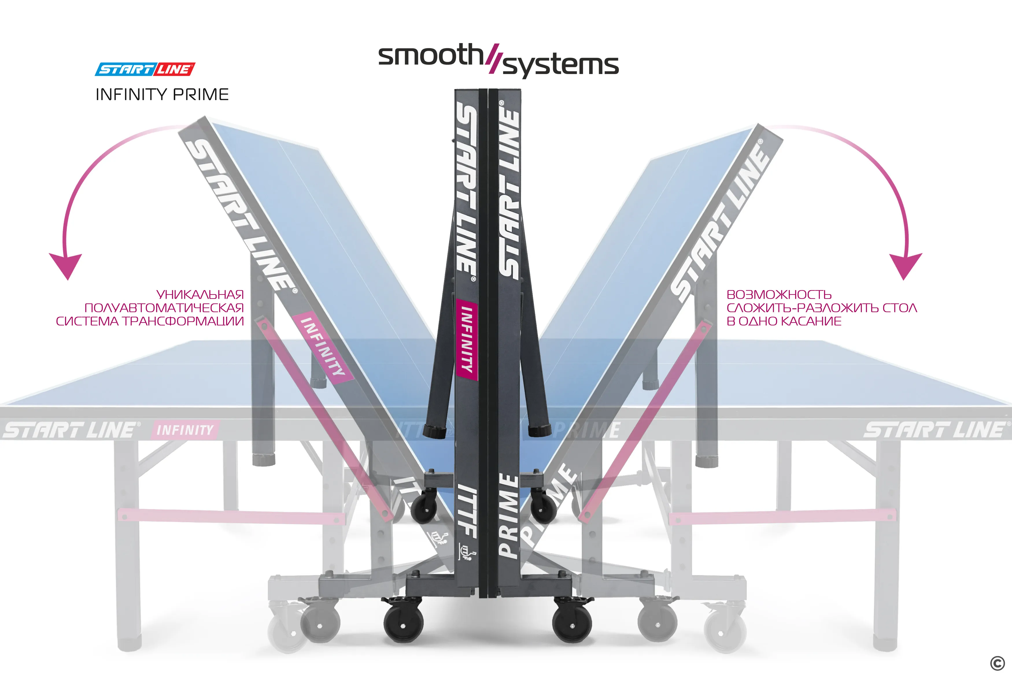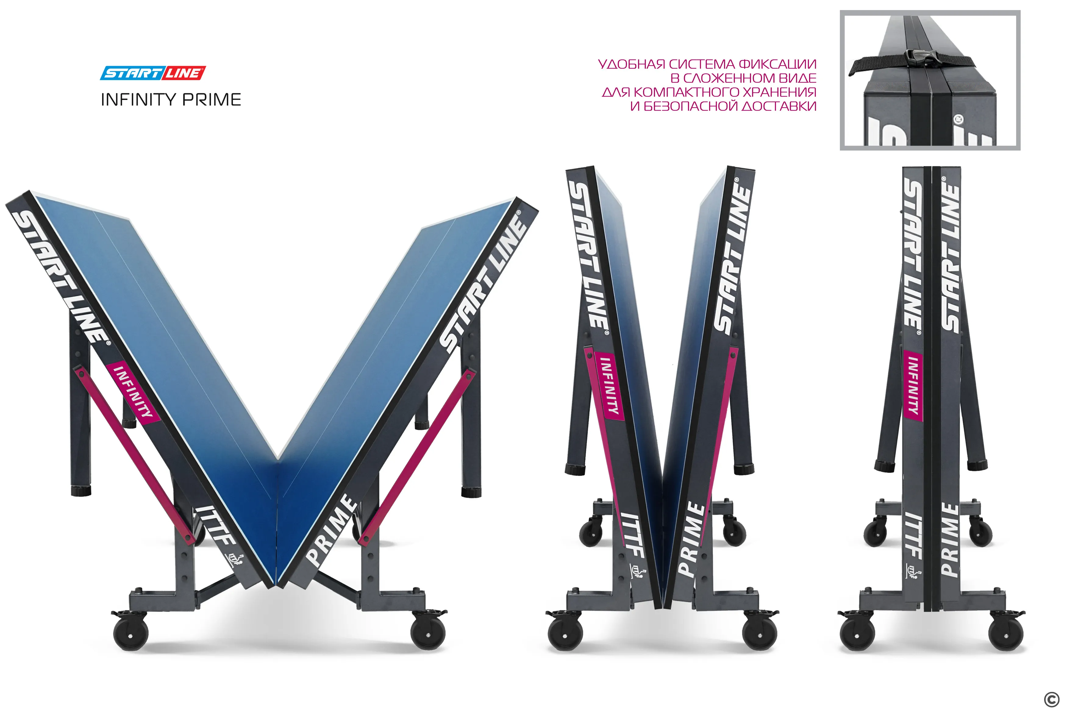 INFINITY PRIME — новый профессиональный теннисный стол для игры в помещении самого высокого уровня. Собственные производственные мощности Start Line позволили модернизировать технологию создания столов и вывести INFINITY PRIME в премиальный сегмент, аналогов которому в России нет! Непревзойденное качество, соответствие стандартам ITTF, удобство эксплуатации и, конечно же, эффектный дизайн — важные достоинства новой модели.