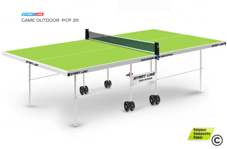 Новой моделью с новой столешницей PCP 20 мм стал теннисный стол Game Outdoor PCP 20. Это универсальный вариант всепогодного стола. Маневренность достигается за счет двойных обрезиненных роликов, модель легко перемещать. Конструкция предусматривает компактную систему трансформации и продумана таким образом, чтобы использовать его мог даже один человек.