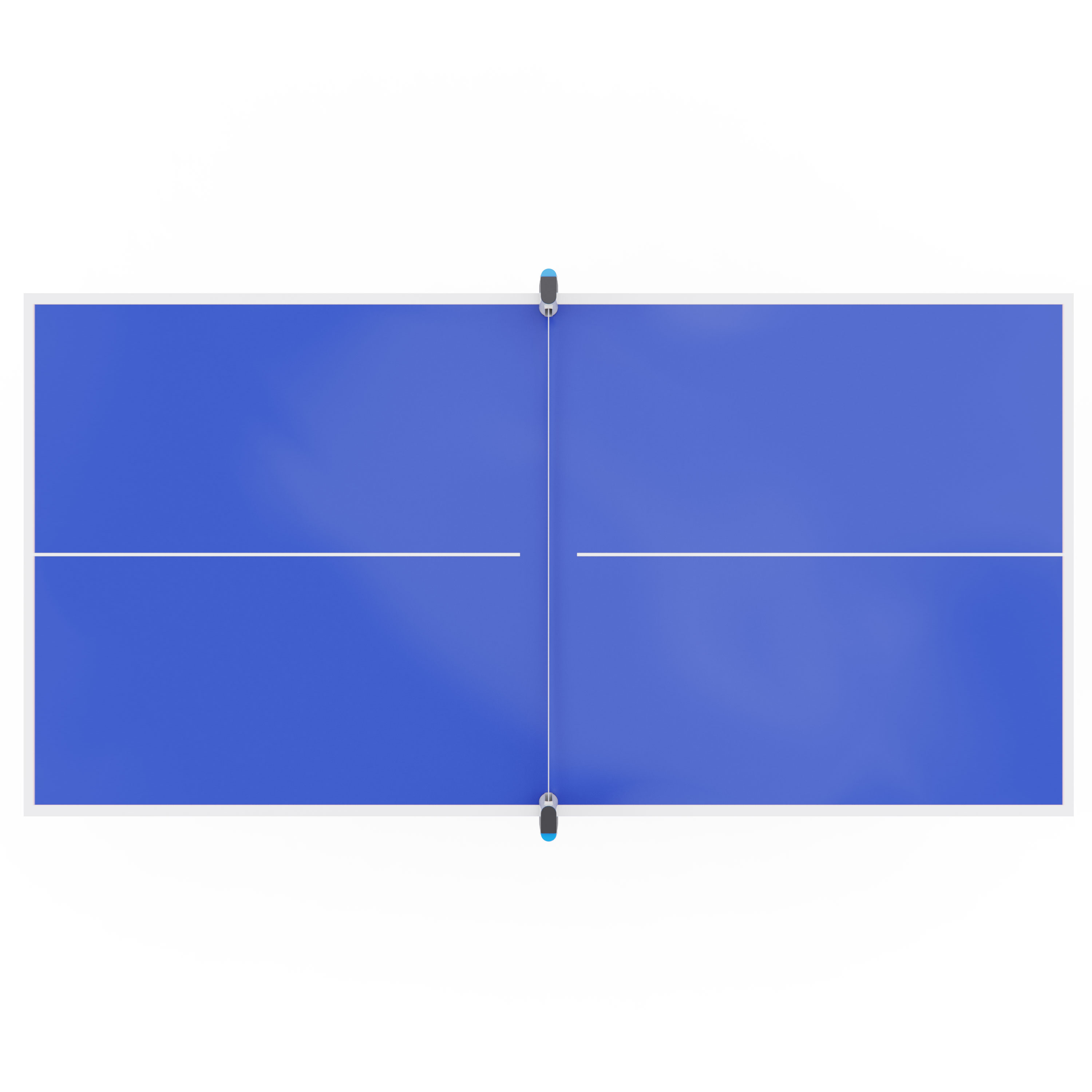 Стол можно сложить наполовину, чтобы использовать в режиме одиночной тренировки — вторая половина служит отражающей поверхностью, позволяя отрабатывать подачи и удары без партнёра.