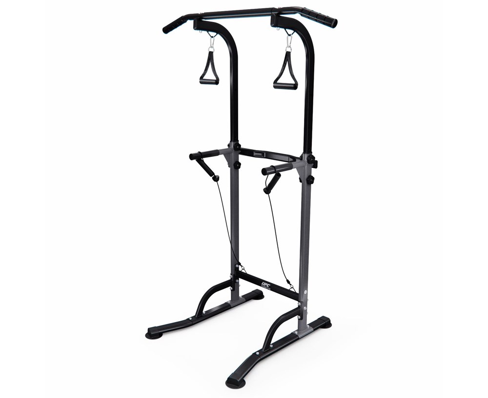 Турник-брусья DFC G007G серого цвета позволяет выполнять упражнения на разные группы мышц. Вес пользователя не должен превышать 120 килограмм.