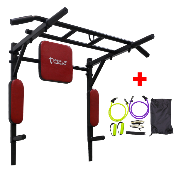 Турник-брусья "Сила" черный (с черными ручками) с набором трубчатых эспандеров №1 AbsoluteChampion